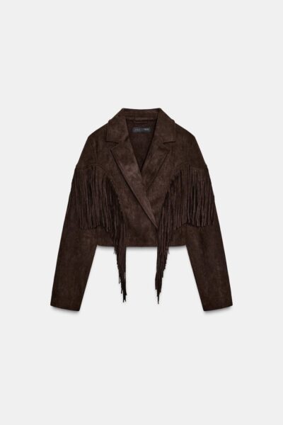 Westernowy vibe wkracza na wybiegi mody na jesień 2025, a Zara nie zostaje w tyle, proponując zamszowy duet, który łączy klasykę z odrobiną dzikiego zachodu. Na czoło wysuwa się krótka kurtka z frędzlami w głębokim brązie – prawdziwy hołd dla rodeo, które po raz kolejny staje się istotnym punktem odniesienia w modzie. Frędzle, które jeszcze kilka lat temu kojarzyły się z boho, teraz zyskują nowoczesne oblicze – dzięki takim markom jak Zara, stają się symbolem miejskiego westernu. Taki element, choć odwołujący się do stylistyki Dzikiego Zachodu, wprowadza do miejskiego stylu element energii i ruchu, w czym zasługą jest również wzrost popularności tego motywu za sprawą albumu Beyoncé „Cowboy Carter”. To ona zainspirowała do ponownego odkrycia westernowego szyku, który po dziś dzień króluje na wybiegach.