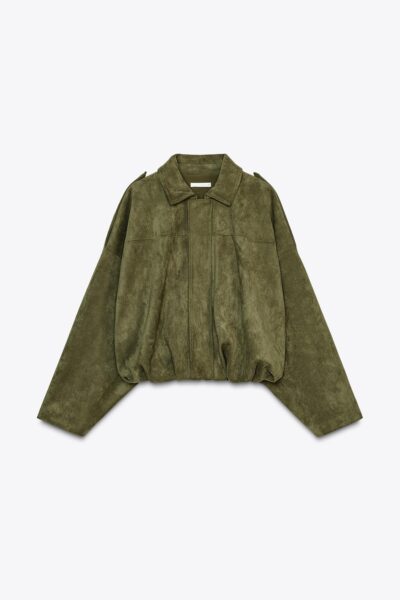 Zara, wychodząc naprzeciw tym globalnym trendom, oferuje swoją wersję zamszowej kurtki w kolorze butelkowej zieleni, która stanowi modny akcent na jesień 2025. Kurtka w formie klasycznej bamberki wyróżnia się subtelną fakturą materiału i głęboką zielenią, która łączy elegancję z naturalnym, relaksującym charakterem. Dzięki swojej uniwersalności, łatwo ją zestawić zarówno z casualowymi jeansami, jak i bardziej eleganckimi elementami garderoby, jak dzianinowe sukienki czy wełniane spódnice.