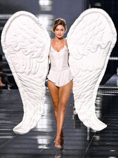Na scenie pojawiło się też więcej znajomych twarzy. Alessandra Ambrosio w kaskadzie piór, Liu Wen w metalicznej zbroi przypominającej futurystyczne skrzydła – każda interpretowała ideę „Aniołka” po swojemu. Efekt był wielowymiarowy: od zmysłowości po siłę, od tradycji po nowoczesność.
