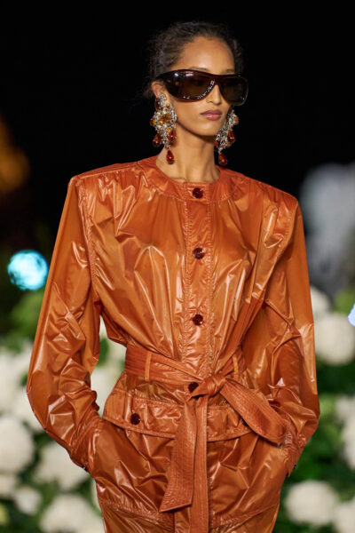 Nie zabrakło odniesień do historycznych momentów z archiwum domu mody – od kostiumów dla Jane Birkin na słynnym balu Prousta w 1971 roku po ducha Françoise Giroud, która opisywała kobietę YSL jako „louche za dnia, hrabinę nocą”. Kolekcję zapamiętamy także dzięki „mięsistym” skórzanym kurtkom, białym koszulom z obfitymi kokardami czy lekkim jak mgła nylonowym trenczom, które – jak żartował Vaccarello – można zwinąć do małej torebki.